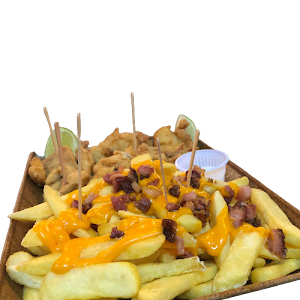 Pão baguete, bolinho de carne assado na brasa,um delicioso molho de queijo cheddar, bacon, cebola caramelizada, molho verde catchup e m…